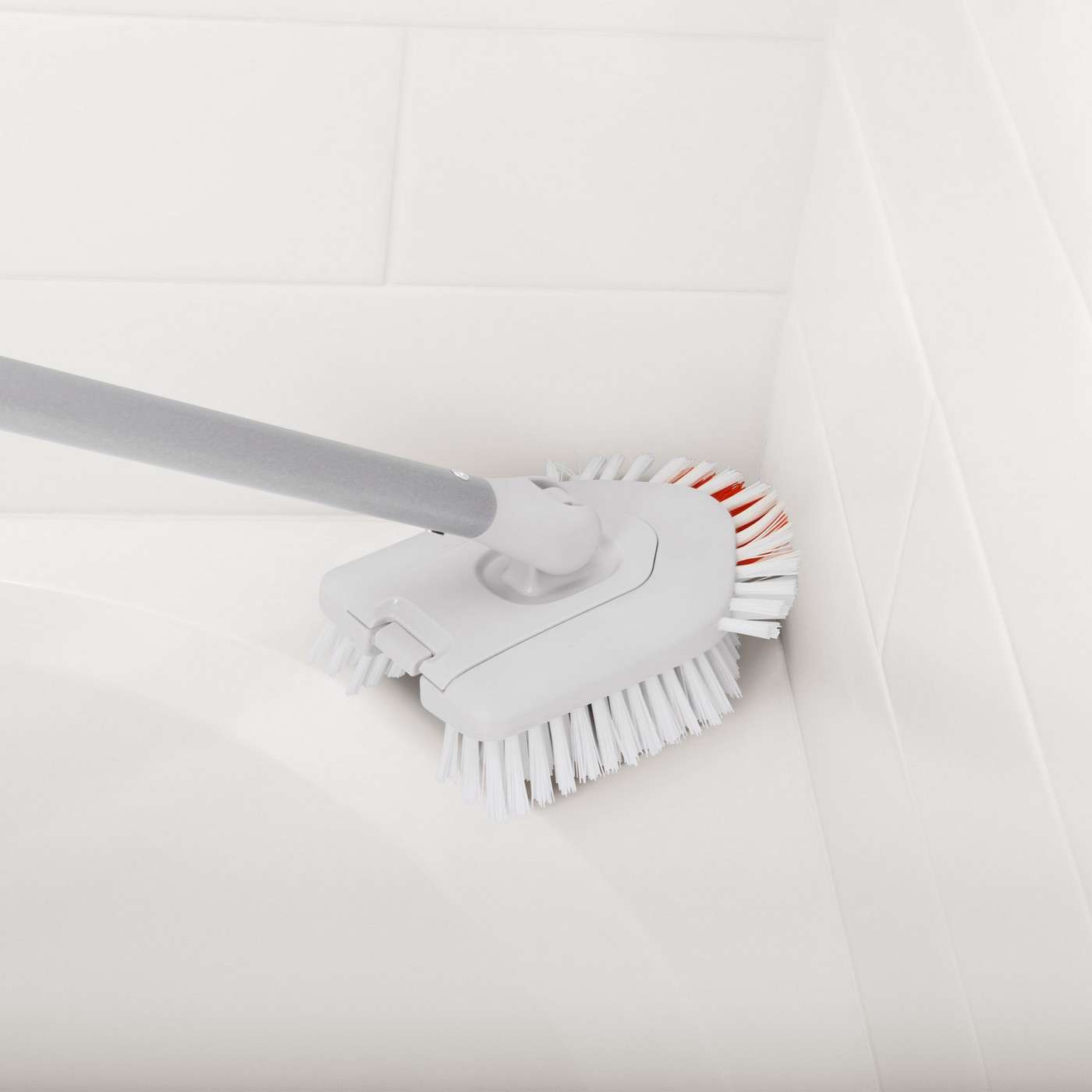 Cleaning doesn’t have to be a back-breaking venture. The Extendable Tub & Tile Brush extends from 66cm to 106cm with a quick twist to clean without climbing or crouching. The bristled head pivots for cleaning at different angles, making it perfect for tubs, tiles, glass, floors and narrow spaces around the toilet. Sturdy bristles scrub broad surfaces and fit into corners while the front bristles are shaped to get into corners, recesses and grout lines. The sturdy steel pole and non-slip handle make even the toughest cleaning jobs a little easier. Refill available #12166100UK